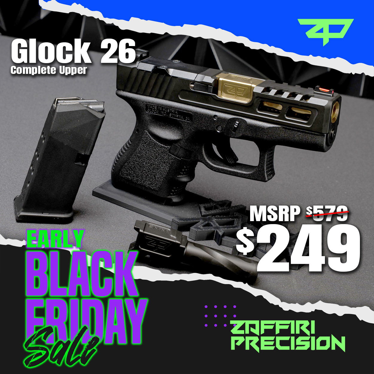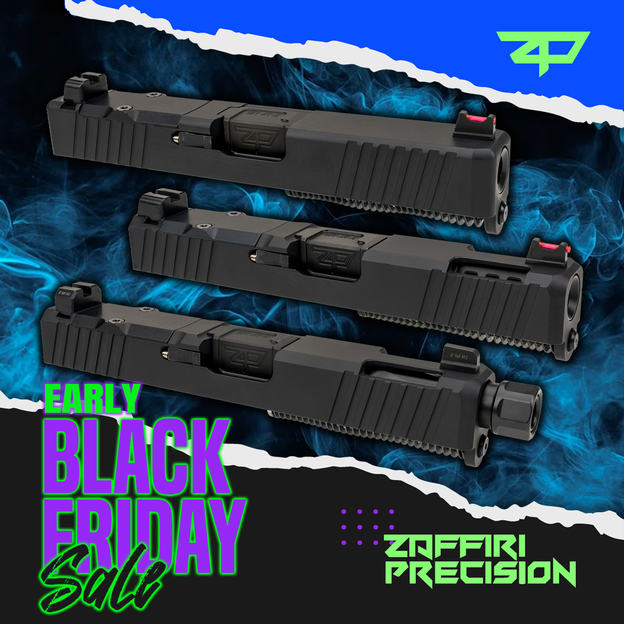 Zaffiri Precision is a leader in American-made, precision-cut parts for Glock and Sig platforms—specializing in custom slides, barrels, and complete uppers that stand out and perform under pressure. With a constantly evolving lineup of limited-edition drops and personalized options, Zaffiri gives expressive gun owners the tools to break away from the status quo.